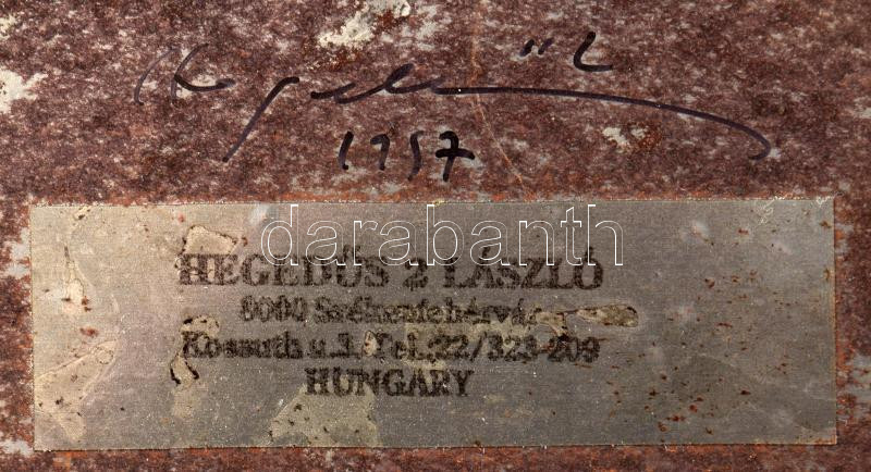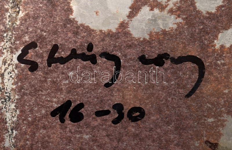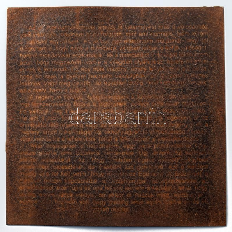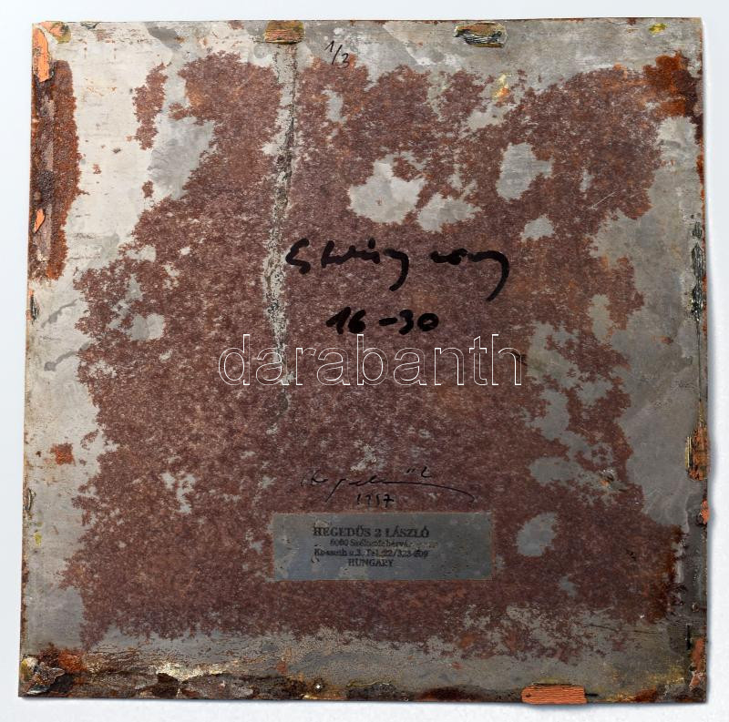 Hegedűs 2 László (1950-), Esterházy Péter (1950-2016): Cím nélkül, 1990-es évek. Vegyes technika, fémlemez. Jelzett a hátoldalán Hegedűs 2 László és Esterházy Péter által. Hátoldalán számozott (1/3). 21,5x21,5 cm.