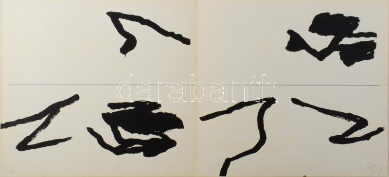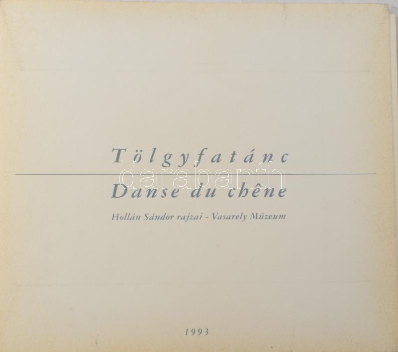 Hollán Sándor (Alexandre Hollan, 1933-): Tölgyfatánc mappa, Vasarely Múzeum, 1993. 3 db szitanyomat, mindegyik jelzett. Mindegyik 9/20 számozással. A művész aláírásával készült 20 db 1-20-ig számozott példány, 10 I-X-ig számozott példány, valamint 6 mappa 1-6-ig számozott H.C. a Szépművészeti Múzeum gyűjteménye és a közreműködő munkatársak számára. Szitanyomat lapméret: 25x56 cm. Eredeti kiadói mappában, lapszéli kisebb elszíneződéssel, máskülönben jó állapotban. Komplett, hiánytalan gyűjtői ritkaság!