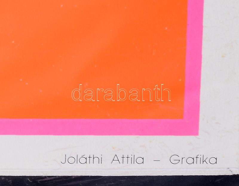Joláthy Attila (1927-1998): Grafika (FNR 777, 1977). Szitanyomat, papír, jelzett a nyomaton. Plexiüvegezett tárlóban. 30x29 cm. / screenprint on paper, signed on the print, framed