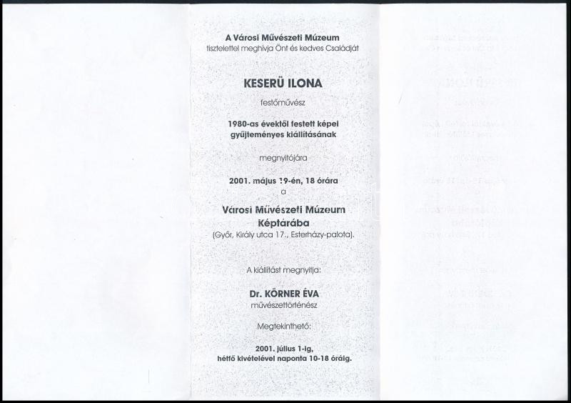 Keserü Ilona (1933-): Kalligrafikus aláírás (Saját kiállítása meghívój... https://www.darabanth.com/de/45-Gross-Auktion/45.1/Gemalde-und-Grafiken/Zeitgenossische-Gemalde-und-Grafiken~18998/Keseru-Ilona-1933-Kalligrafikus-alairas-Sajat-kiallitasa-meghivojanak-hatoldalan~II3422464