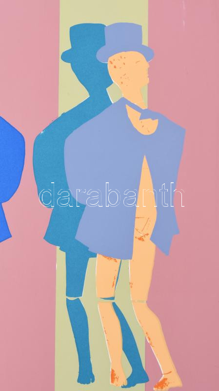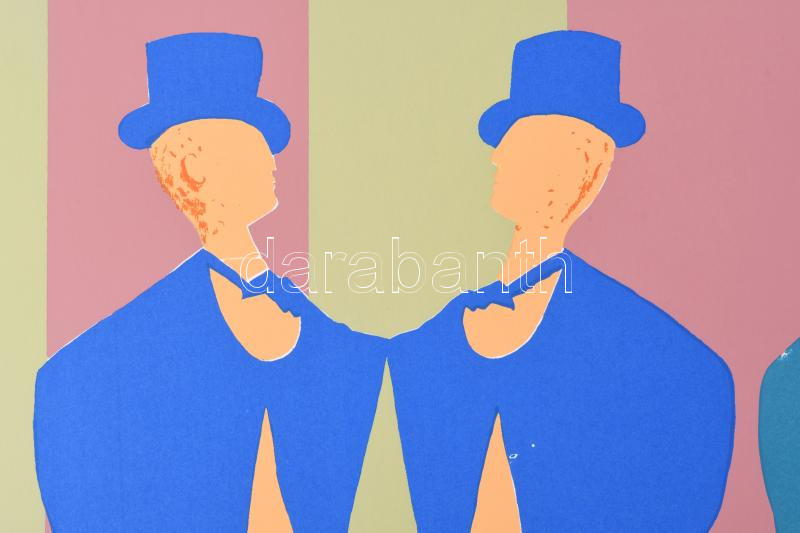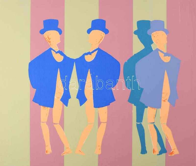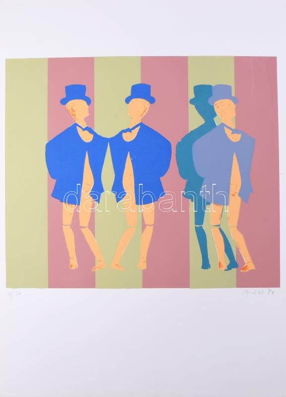 Lux Antal (1935-): Bábuk, 1970. Szitanyomat, papír. Jelzett és datált (A Lux 70), számozott: 4/30. 40x46 cm. Magyarországon nagyon ritka klasszikus pop art mű, mivel a művész Nyugat-Németországban alkotta. Gyűjtői ritkaság, mindössze 30 számozott példányban készült! / Antal Lux (1935-): Puppets, 1970. Serigraphy on paper. Signed and dated (A Lux 70), numbered: 4/30. 40x46 cm . Very rare work from the classic period of pop art, made in West Germany!