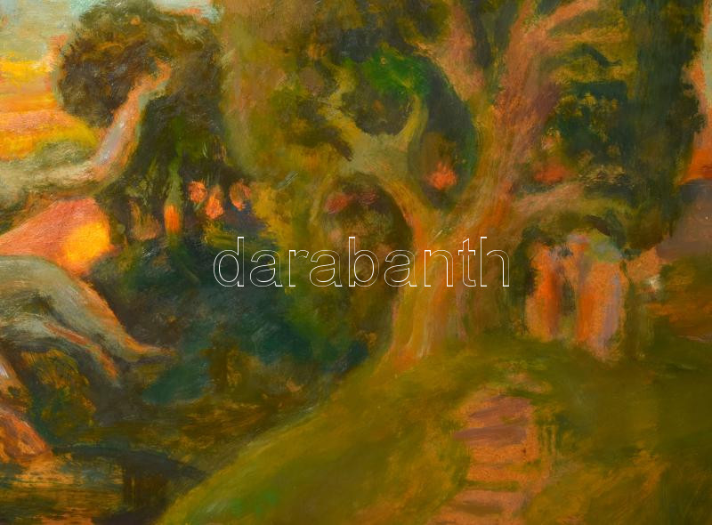 Szabó Vladimir (1905-1991): Alkony a parkban. Olaj, farost. Jelzett a ... https://www.darabanth.com/de/45-Gross-Auktion/45.1/Gemalde-und-Grafiken/Zeitgenossische-Gemalde-und-Grafiken~18998/Szabo-Vladimir-1905-1991-Alkony-a-parkban-Olaj-farost-Jelzett-a-hatoldalan-Dekorativ-fake~II3440259