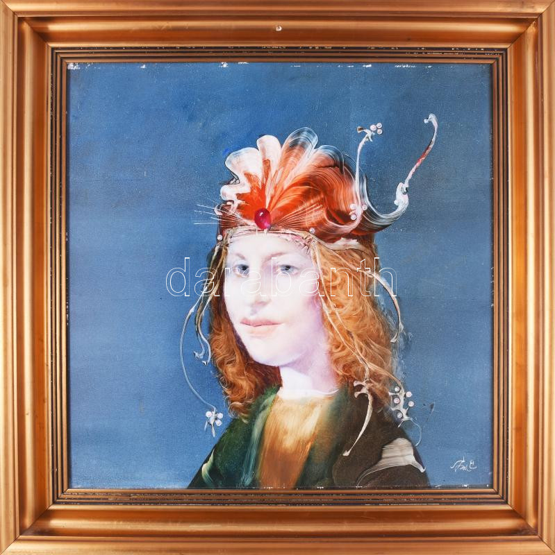 Szász Endre (1926-2003): Női portré. Olaj, farostlemez, jelzett. Alján felületi kopással (feltehetően korábbi keretezésből fakadó). Dekoratív fakeretben, 49x50 cm.
