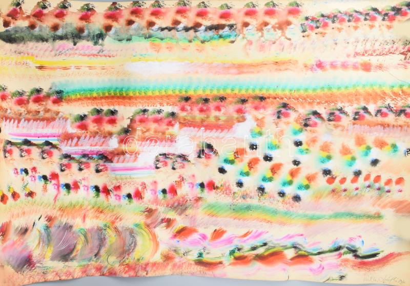 Vinkler László (1912-1980): A Sacre de printemps zenéjére I., 1971. Akvarell, papír. Jelezve jobbra lent. Feltekerve, javított szakkadással, lapszéli kisebb szakadással. 73x102 cm