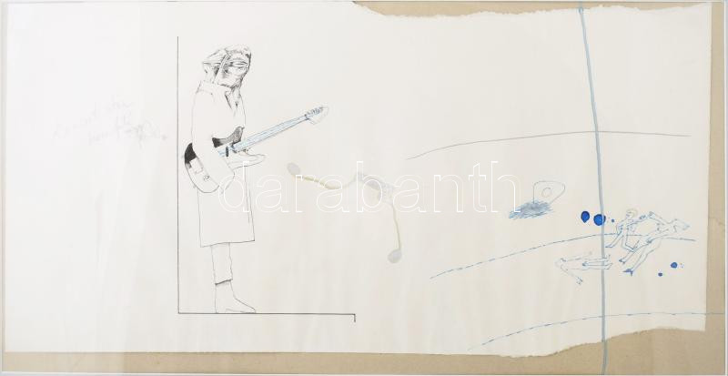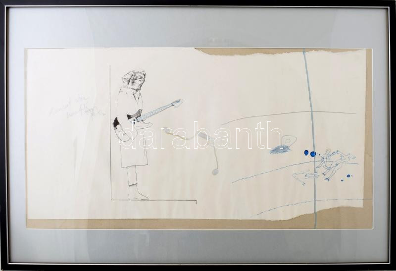 Wahorn András (1953-): Koncert után hazafelé, 1982. Vegyes technika, papír. Jelezve balra középen fent. 33x66 cm. Üvegezett fakeretben. Az életmű korai darabja, a Bizottság zenekar működésének fénykorából!/ mixed technique on paper, signed, framed