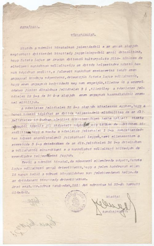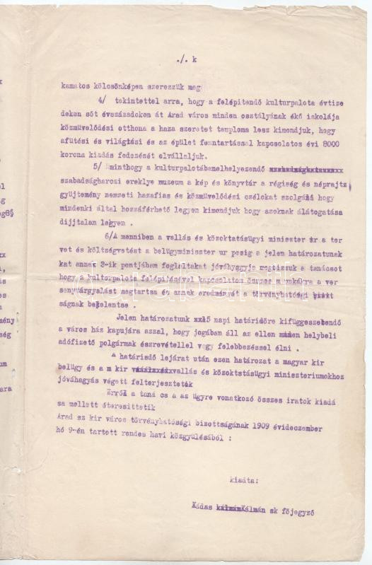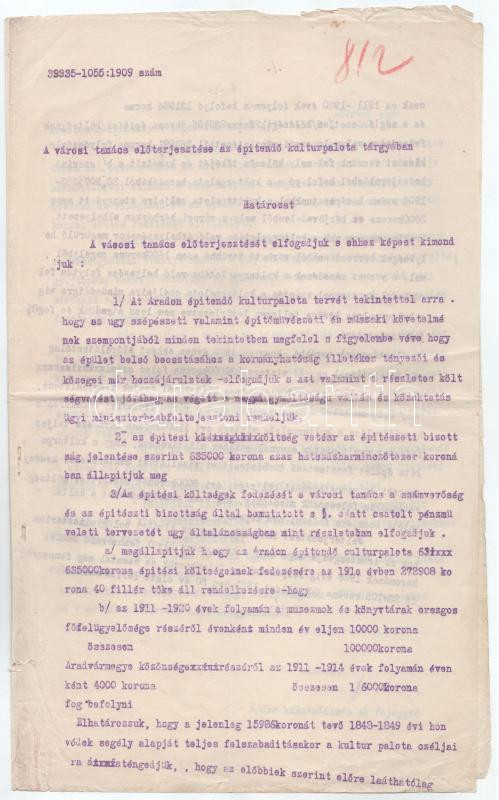 1909-1912 Arad városi kultúrpalota építésével kapcsolatos 3 db irat https://www.darabanth.com/de/45-Gross-Auktion/45.1/Kunst-Dokumente-andere-Sammelgebiete/Dokument~18546/1909-1912-Arad-varosi-kulturpalota-epitesevel-kapcsolatos-3-db-irat~II3447638