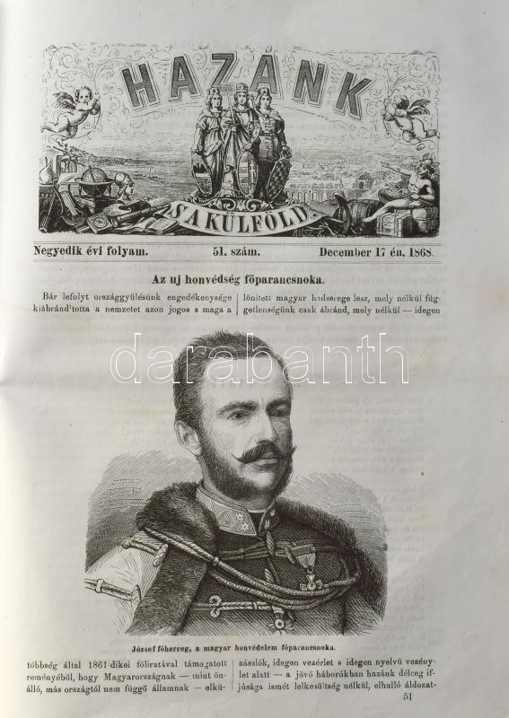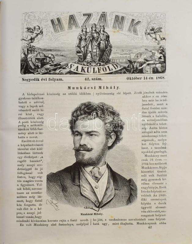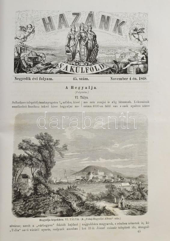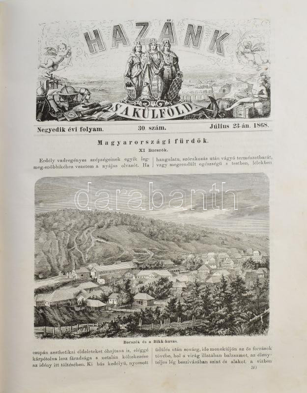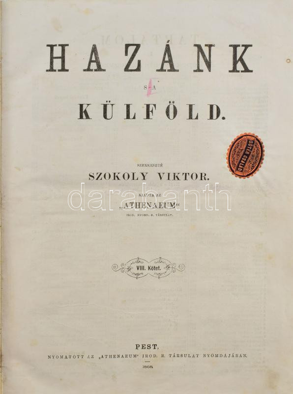 1868 Hazánk s a Külföld. VIII. kötet. IV. évf. 27-53. sz. 1868. Július 2 - december 31. Fél évfolyam. Szerkeszté Szokoly Viktor. Pest, 1868, Athenaeum, 4+417-848 p.
