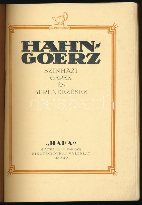 1925 Hahn-Goerz színházi berendezések (magyar vezérképviselet HAFA) termékkatalógusa, színházi vetítőgépek, világítás, rajzokkal gazdagon illusztrálva, magyar nyelven, szép állapotban, 71p