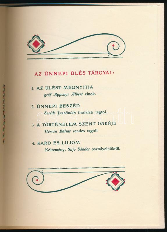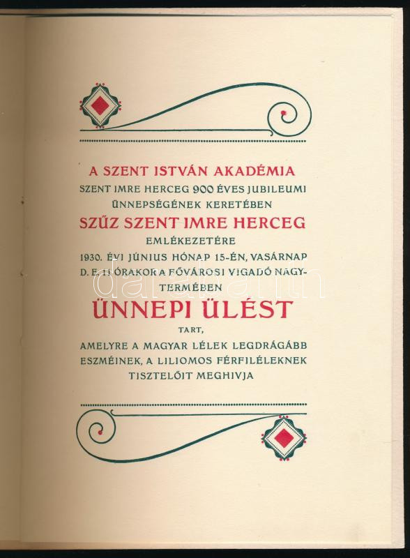 1930 Szent István akadémia Szent Imre herceg tiszteletére tartott ünne... https://www.darabanth.com/de/45-Gross-Auktion/45.1/Kunst-Dokumente-andere-Sammelgebiete/Drucksachen~18978/1930-Szent-Istvan-akademia-Szent-Imre-herceg-tiszteletere-tartott-unnepi-ules-diszmeghivoja~II3421736