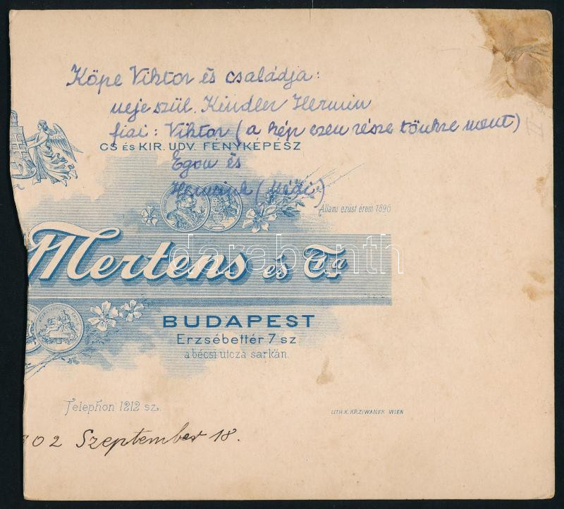 1902 Köpe (Keöpe) Viktor író és családja, keményhátú fotó hátoldalon f... https://www.darabanth.com/de/45-Gross-Auktion/45.1/Kunst-Dokumente-andere-Sammelgebiete/Foto~18977/1902-Kope-Keope-Viktor-iro-es-csaladja-kemenyhatu-foto-hatoldalon-feliratozva-vagott~II3438018