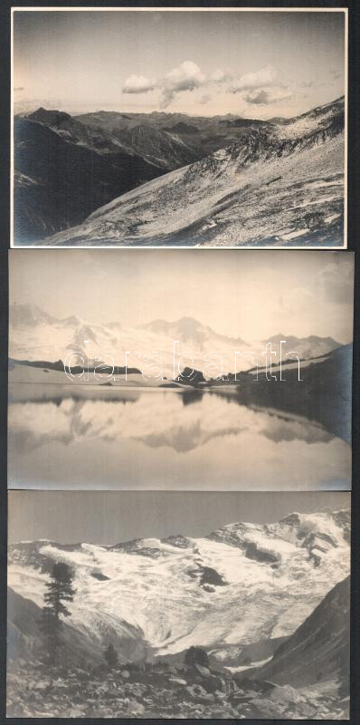 1930 Bíró Pál budapesti fotóművész felvételei az Alpok tájairól, 4 db vintage fotó, ezüst zselatinos fotópapíron, az egyik aláírt és datált, a többi jelzés nélküli, 23,5x17,5 cm12x17,5 cm