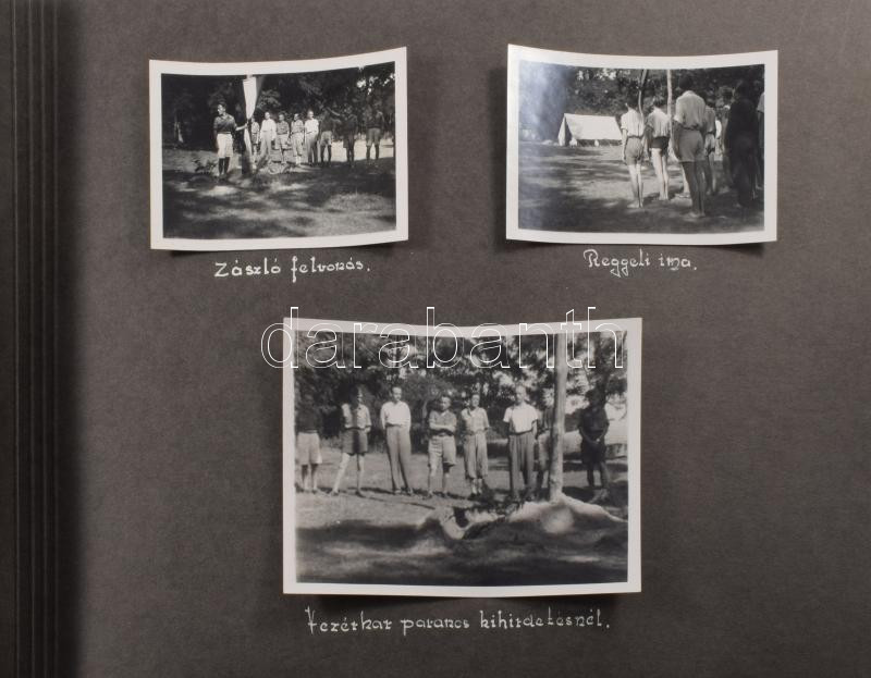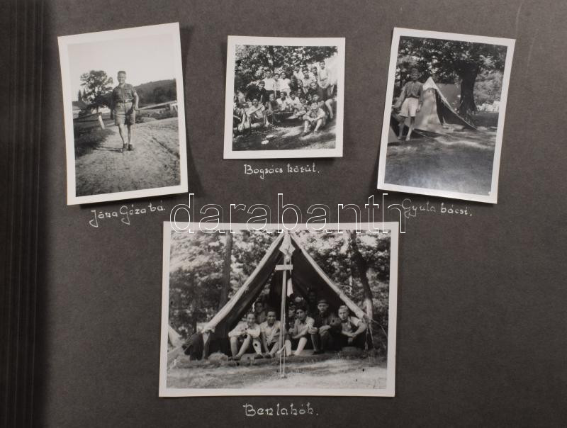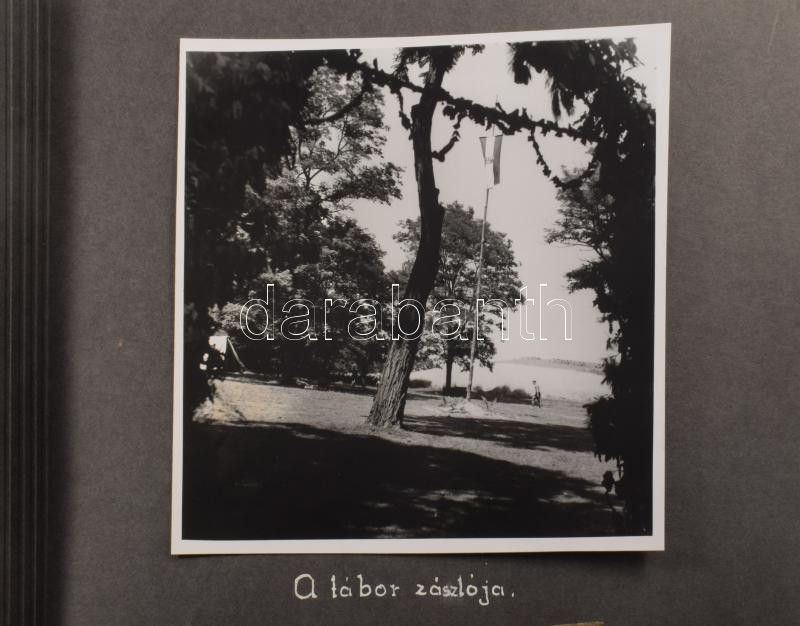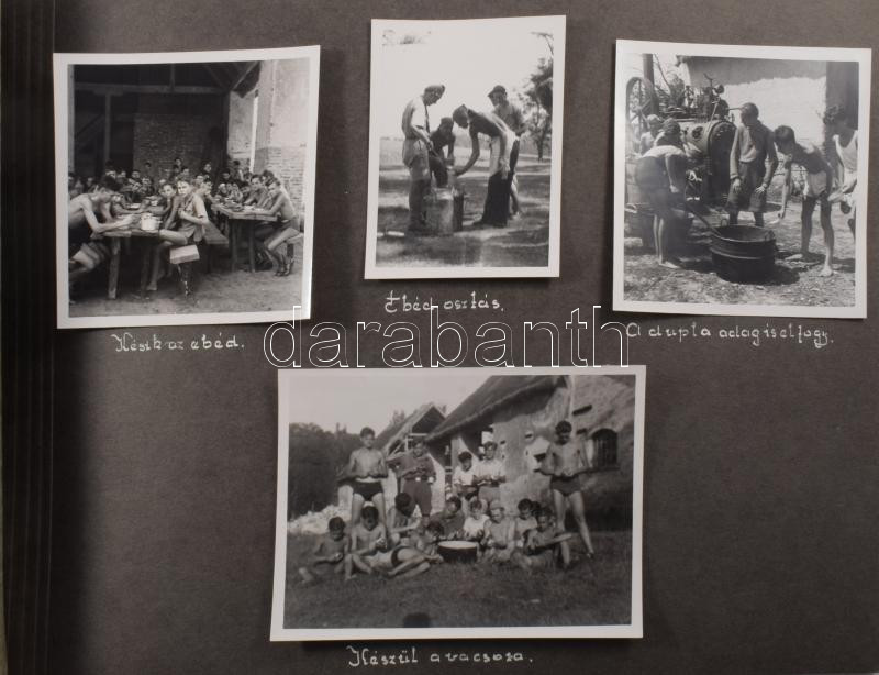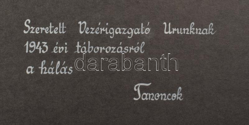 1943 A Standard Villamossági R.T. által szervezett ifjúsági tábor emlékalbuma, Sziklay Ernő kormányfőtanácsos, a vezérigazgató részére: ,,Szeretett Vezérigazgató Urunknak 1943 évi táborozásról a hálás Tanoncok", összesen 61 db beragasztott fotóval, zsinórfűzéses albumban, a borítón kis sérüléssel, 24x33x3 cm