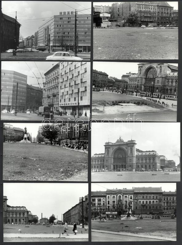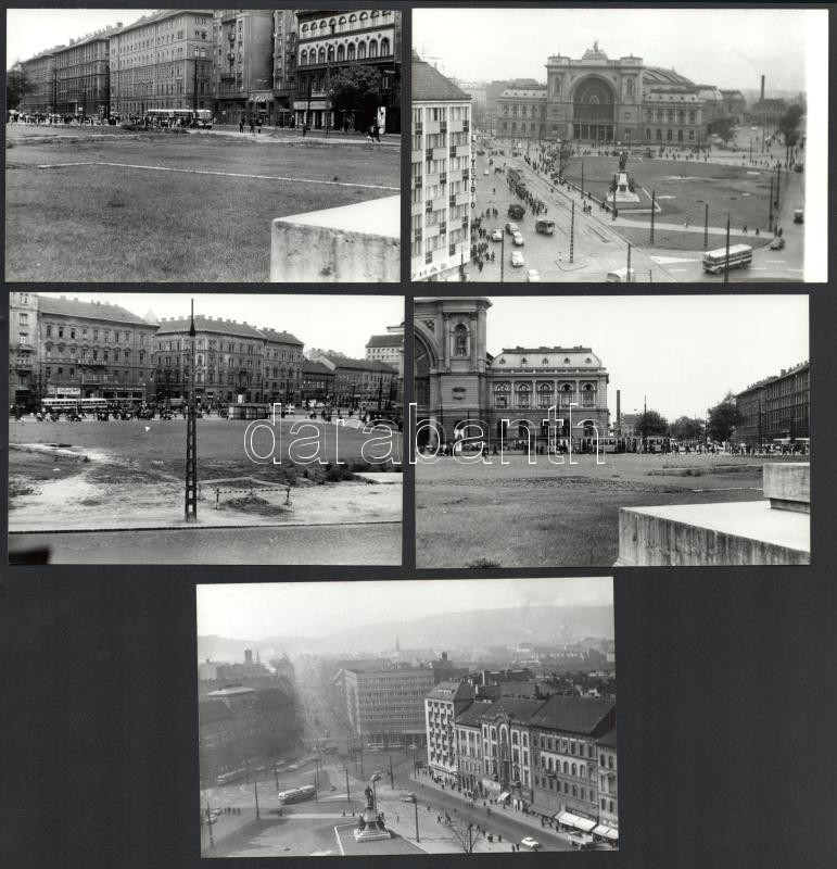 1967 Budapest, a Baross tér látképe az aluljárórendszer építése előtt, 13 db vintage ezüstzselatinos fotó, a többsége feliratozott, jelzett és datált, 9x14 cm és 9x13 cm