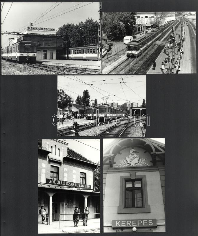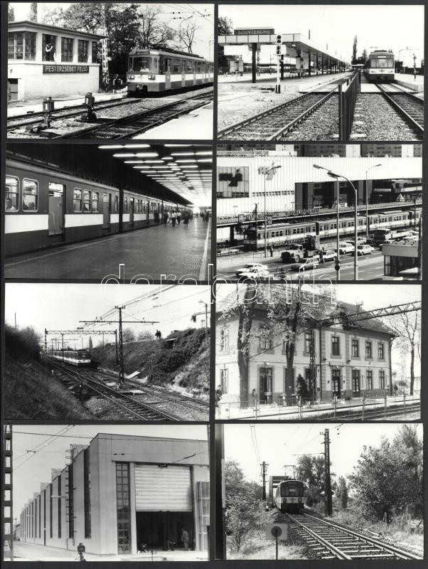 1982 és 1993 között készült felvételek HÉV állomásokról, HÉV vonalakról és HÉV járművekről, 13 db vintage ezüstzselatinos fotó, a többsége feliratozott, jelzett és datált, 9x13 cm és 10x15 cm között