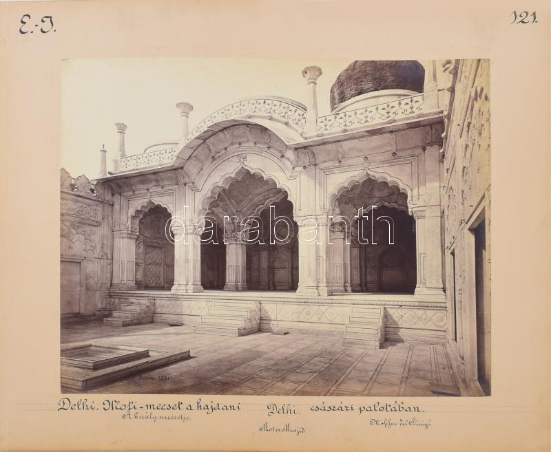 Samuel Bourne (1834-1912): India, Delhi Drama-mecset /Mofi mecset Shepherd & Robertson Co. Kétoldalas albumin fotó kartonon. Cholnoky Jenő földrajztudós és utazó feliratozásával 38x30 cm /
