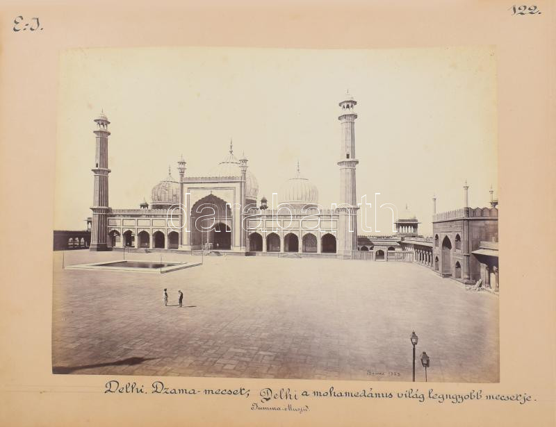 Samuel Bourne (1834-1912): India, Delhi mosques. Shepherd & Robertson. Double sided albumen photo on cardboard Signed. With captions by geographer and traveler Jenő Cholnoky 38x30 cm