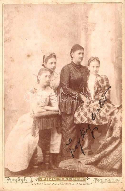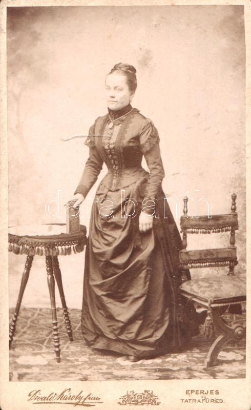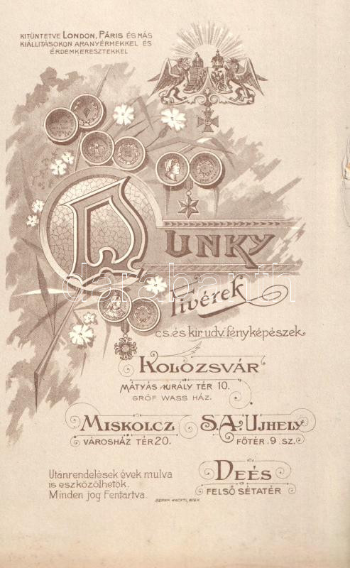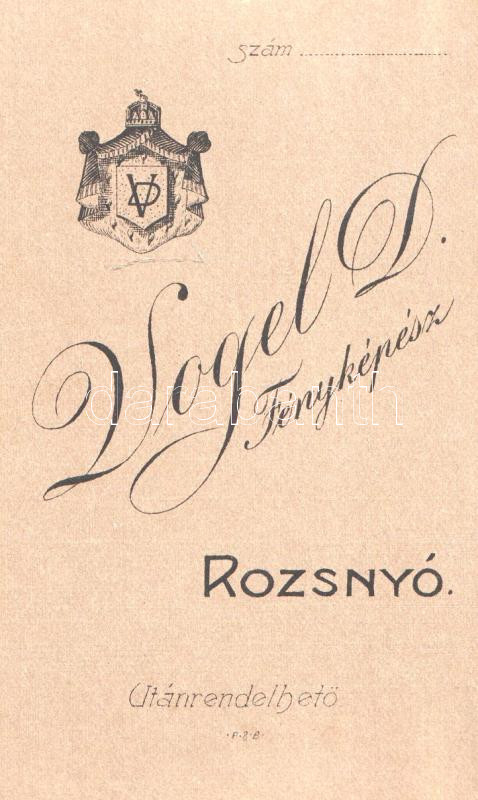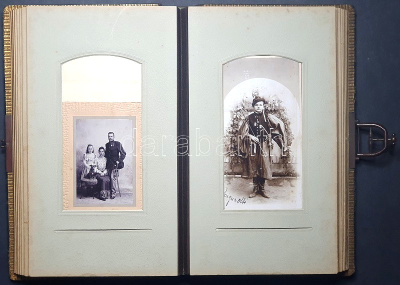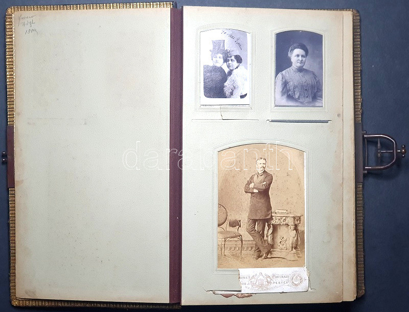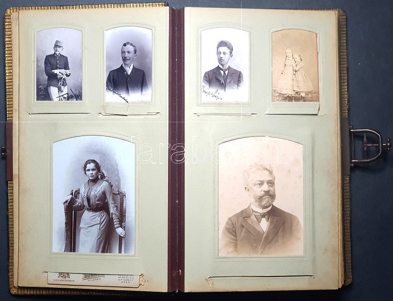 [Fotóalbum] Lám Frigyes dobsinai magyar királyi postamester úr tágabb felvidéki családjának fotóalbuma. A keményhátú családi vizitkártyákon és fotókon Divald Károly eperjesi és más késmárki, rozsnyói, egri, budai, pesti és budapesti fényképészek felvétele (1875-1905 között).