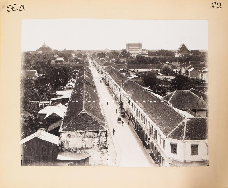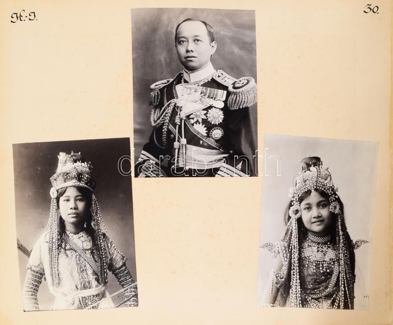 Thaiföld, Sziám VI. Ráma király és hercegnői / Sziámi utcakép Kétoldalas albumin fotó kartonon. Cholnoky Jenő földrajztudós és utazó feliratozásával 38x30 cm /