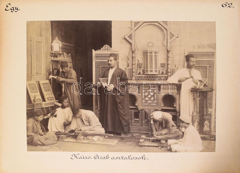 ca 1890 Adelphoi Zangaki: Egypt, Tulon district / Arab carpenters, Signed albumen photos inscribed by Jenö Cholnoky Hungarian traveler cardboard 38x30 cm