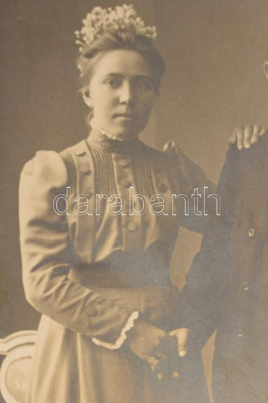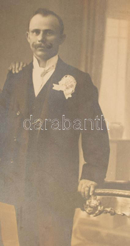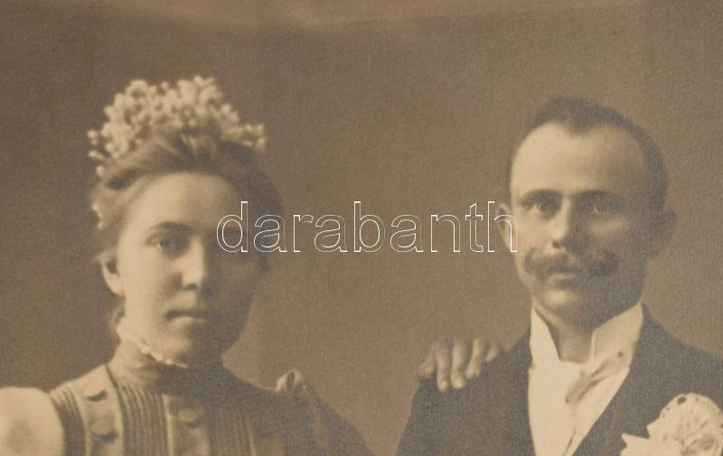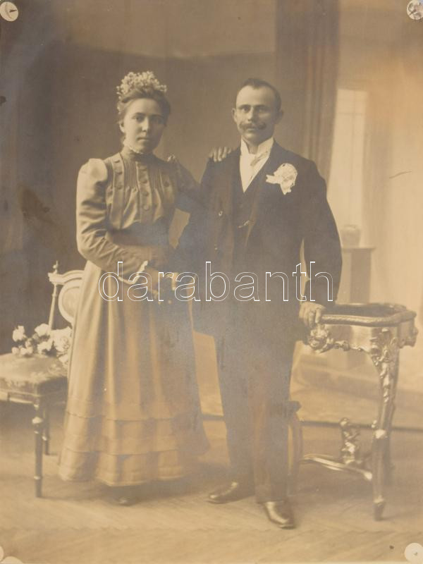 Beschreibung: ca 1900 A gróf báró Üchtritz-Amádé család kastélyának parádés kocsisának Gebe Jánosnak esküvői fotója. 30x40 cm