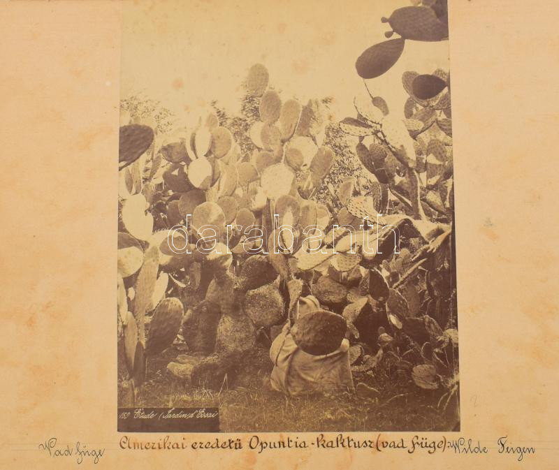 ca 1900 Félix Bonfils (1831-1885): Palestine, Pilgrims / Puntia cactus double-sided photo. Gelatin silver enlargement photo on cardboard, inscribed by geographer and traveler Jenő Cholnoky. Total size 38x30 cm /