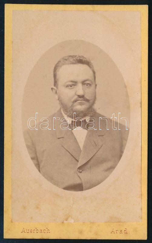 Beschreibung: cca 1874 Partenie Cosma (1837-1923) román politikus, keményhátú fotó Auerbach Miksa aradi műterméből, 10,5×6,5 cm
