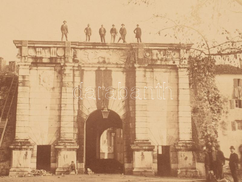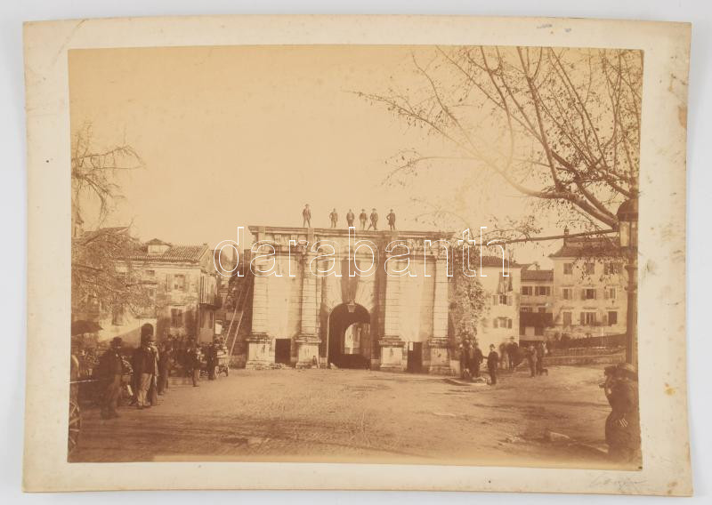 cca 1890-1900 Bartolomeo Borri (1842-1924): Greece, Corfu, Porta Reale (demolished in 1893), large-size photo on board, spotty, 22x28 cm