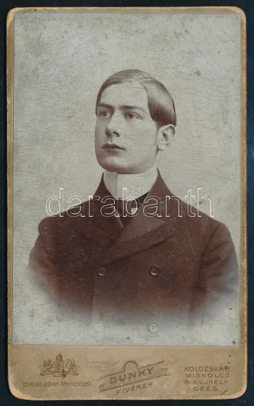 Beschreibung: cca 1890 Perczel Gábor, Perczel Júlia fivére, keményhátú fotó a Dunky Fivérek kolozsvári műterméből, 10,5×6,5 cm