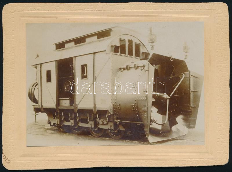 Beschreibung: cca 1900 Hóhányó vasúti gép a MÁV Gépgyárban, keményhátú fotó, hátulján feliratozva, 13,5×18 cm / train snow plow