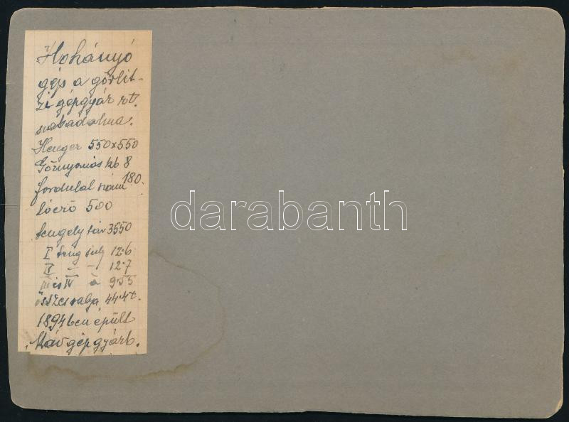 cca 1900 Hóhányó vasúti gép a MÁV Gépgyárban, keményhátú fotó, hátuljá... https://www.darabanth.com/de/45-Gross-Auktion/45.1/Kunst-Dokumente-andere-Sammelgebiete/Foto~18977/cca-1900-Hohanyo-vasuti-gep-a-MAV-Gepgyarban-kemenyhatu-foto-hatuljan-feliratozva-1~II3447981