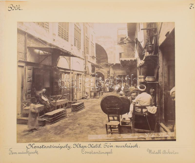 cca 1900 Constantinople (Istanbul) Ejub / Khab Kalil metal workers. Double sided albumin photos by Sébah & Joaillier with Hungarian traveler's caption 36x30 cm