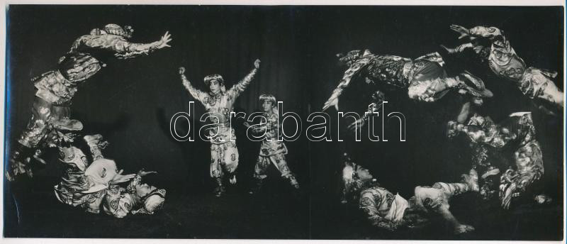 cca 1962 Landau Erzsébet (1896-1967) budapesti (később Párizsban élt Ergy Landau néven) fotóművész és fényképész felvétele (fotómontázsa) egy kínai cirkusz akrobatáiról, vintage fotó, pecséttel jelzett, 12x29 cm