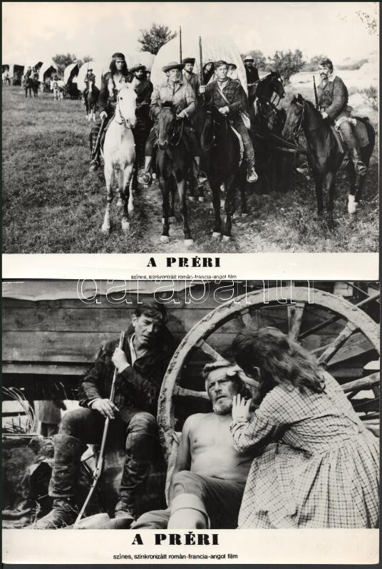 cca 1989 előtt készült, "A préri" című angol-francia-román film jelenetei és szereplői, 13 db vintage produkciós filmfotó (vitrinfotó, lobbyfotó) ezüst zselatinos fotópapíron, a használatból eredő (esetleges) kisebb hibákkal, 18x24 cm