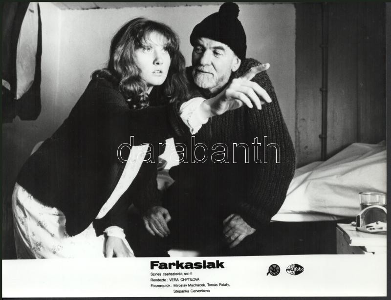 cca 1989 előtt készült, "Farkaslak" című csehszlovák sci-fi film jelenetei és szereplői, 7 db vintage produkciós filmfotó (vitrinfotó, lobbyfotó) ezüst zselatinos fotópapíron, a használatból eredő (esetleges) kisebb hibákkal, 18x24 cm