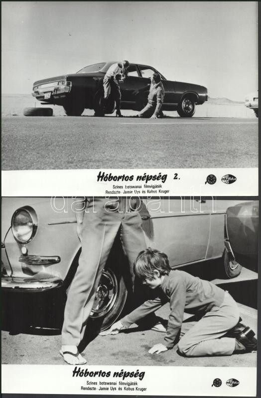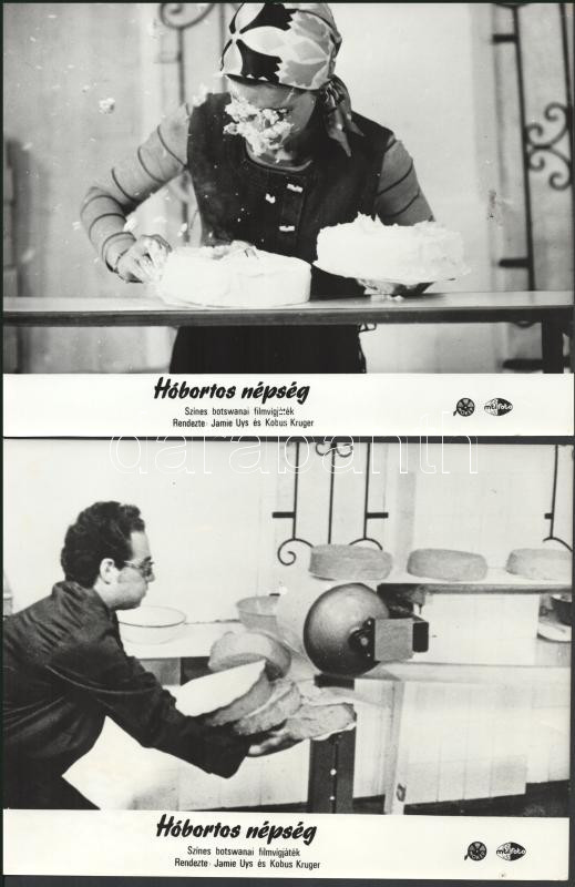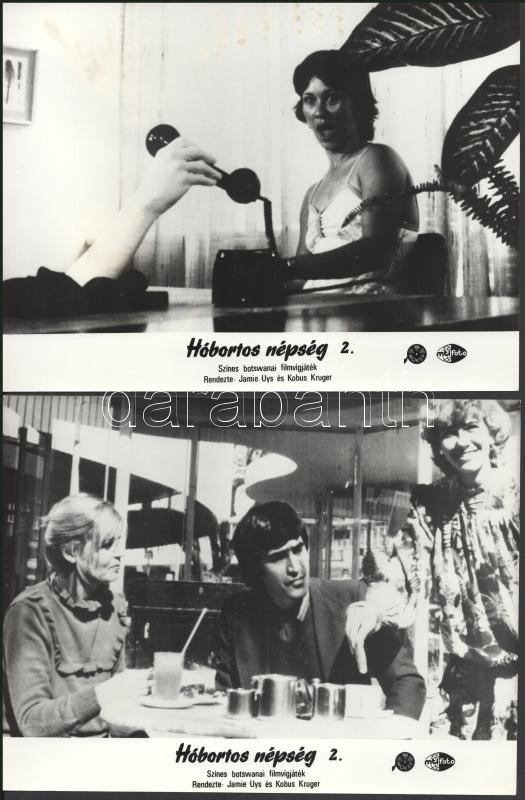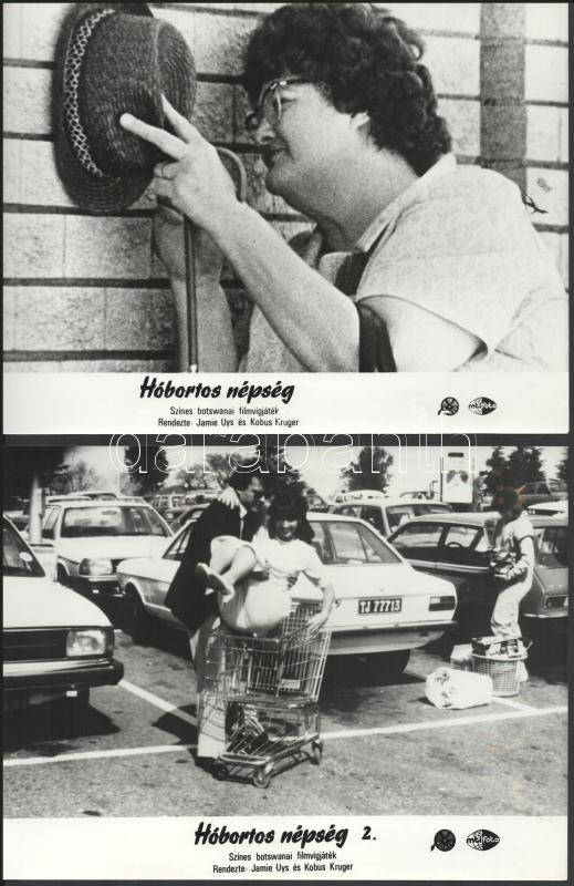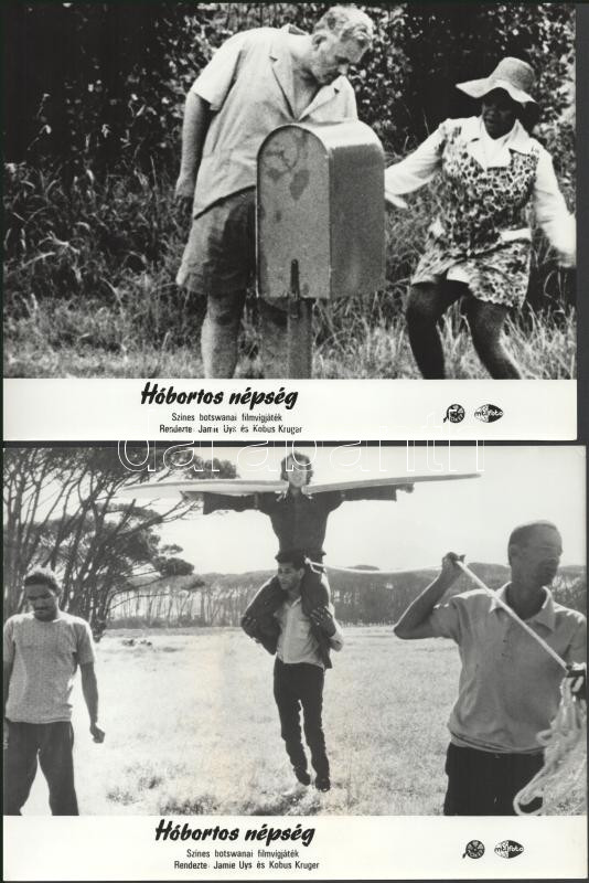cca 1989 előtt készült, "Hóbortos népség" című botswanai film jelenetei és szereplői, 11 db vintage produkciós filmfotó (vitrinfotó, lobbyfotó) ezüst zselatinos fotópapíron, a használatból eredő (esetleges) kisebb hibákkal, 18x24 cm