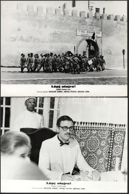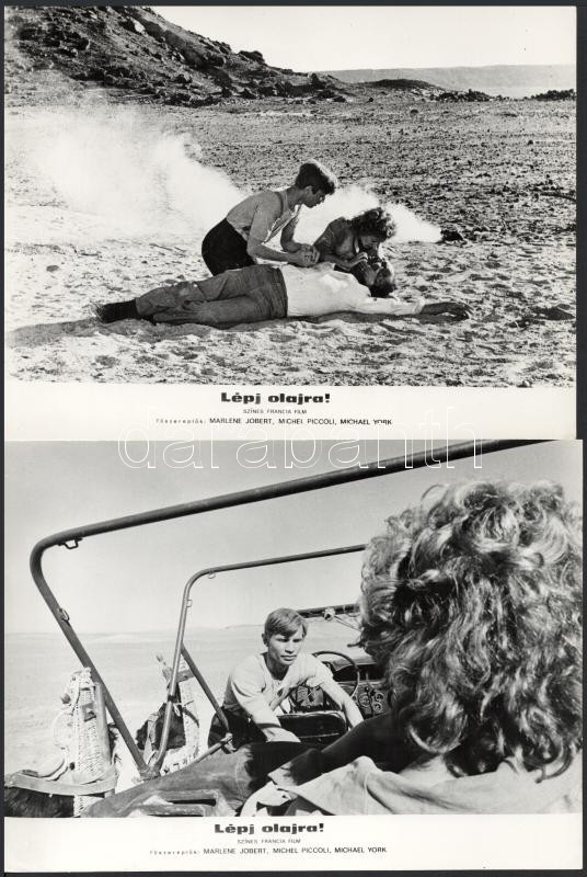 cca 1989 előtt készült, "Lépj olajra" című francia film jelenetei és szereplői, 16 db vintage produkciós filmfotó (vitrinfotó, lobbyfotó) ezüst zselatinos fotópapíron, a használatból eredő (esetleges) kisebb hibákkal, 18x24 cm