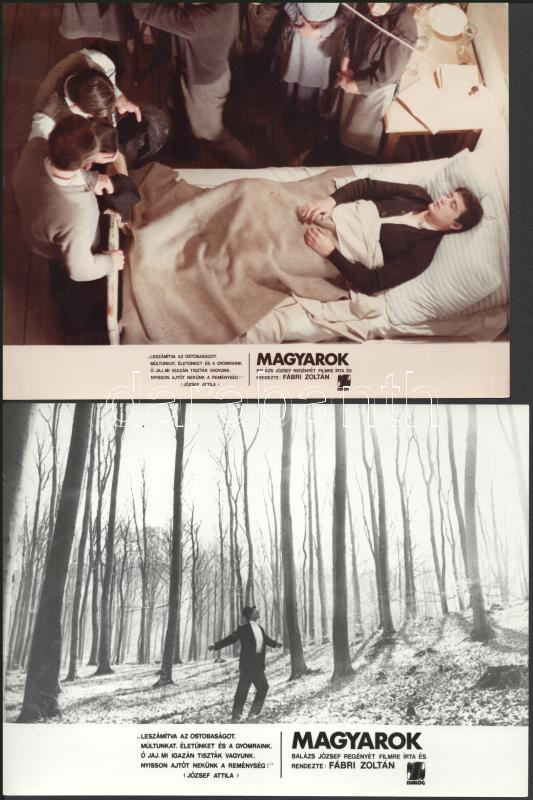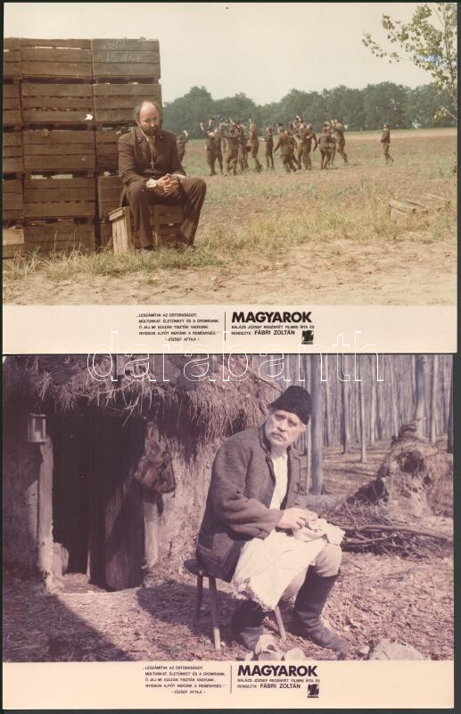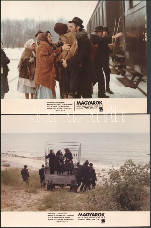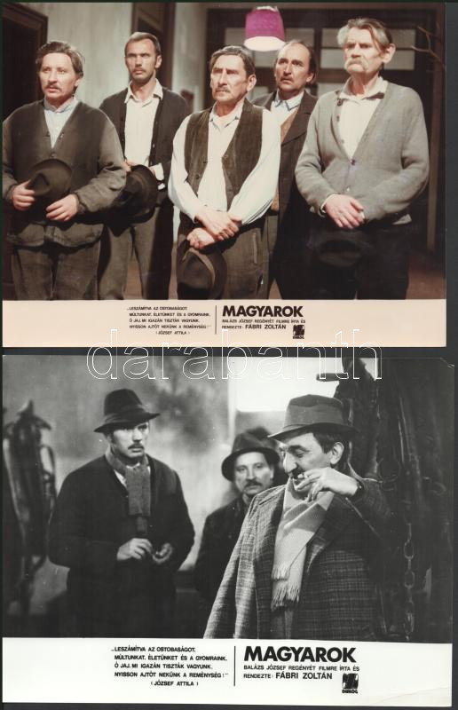 cca 1989 előtt készült, "Magyarok" című magyar film jelenetei és szereplői, 31 db vintage produkciós filmfotó (vitrinfotó, lobbyfotó) ezüst zselatinos fotópapíron, a használatból eredő (esetleges) kisebb hibákkal, 18x24 cm