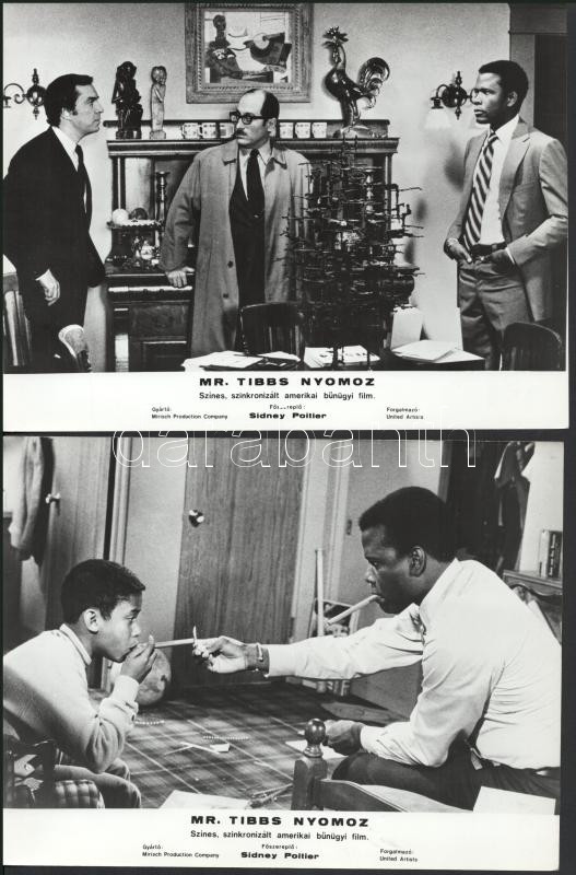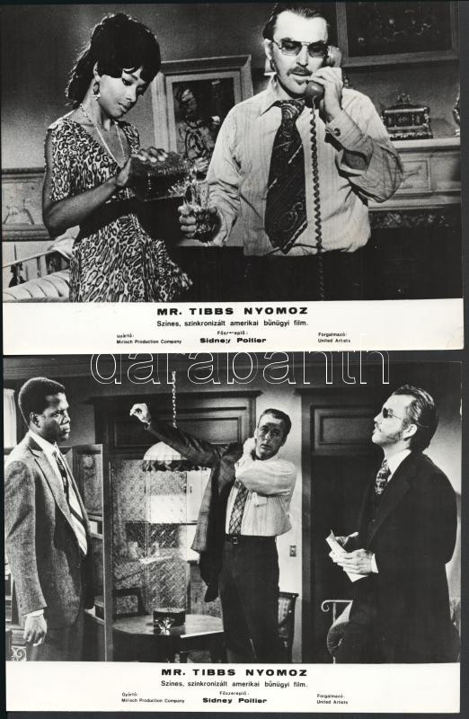 cca 1989 előtt készült, "Mr. Tibbs nyomoz" című amerikai film jelenetei és szereplői, 8 db vintage produkciós filmfotó (vitrinfotó, lobbyfotó) ezüst zselatinos fotópapíron, a használatból eredő (esetleges) kisebb hibákkal, 18x24 cm
