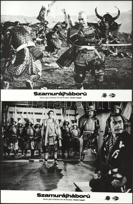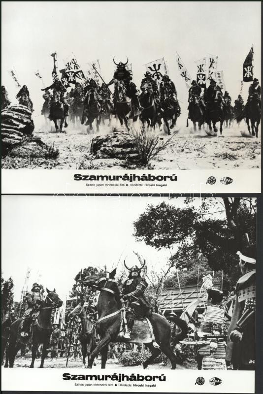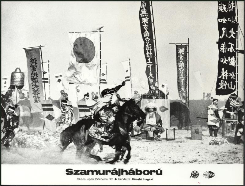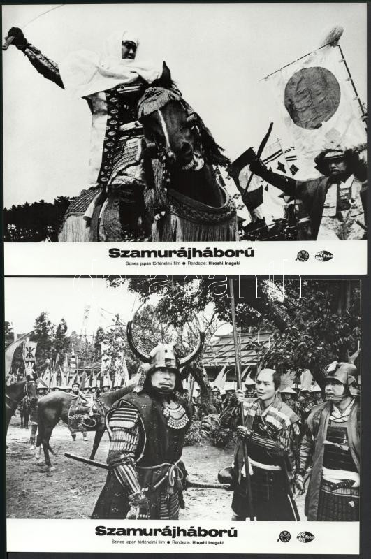 cca 1989 előtt készült, "Szamurájháború" című japán film jelenetei és szereplői, 7 db vintage produkciós filmfotó (vitrinfotó, lobbyfotó) ezüst zselatinos fotópapíron, a használatból eredő (esetleges) kisebb hibákkal, 18x24 cm