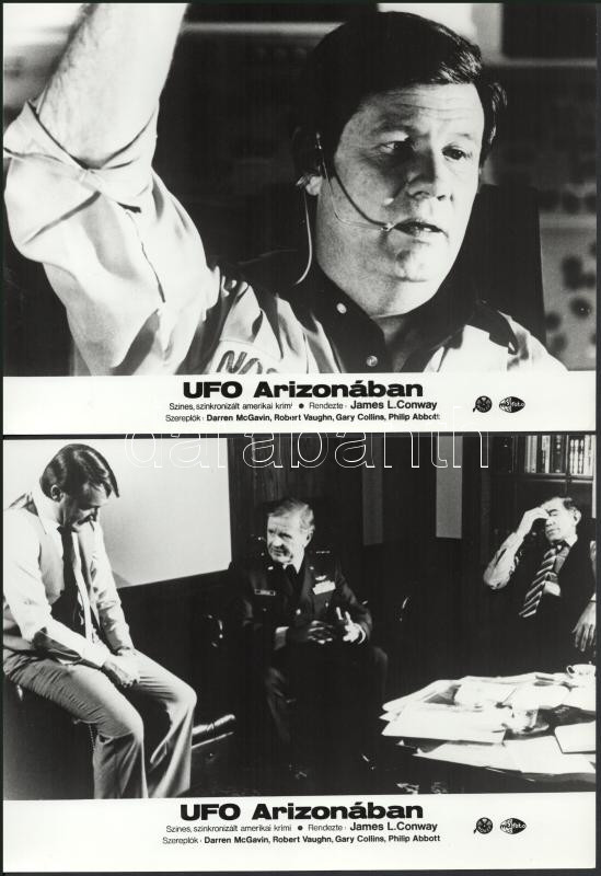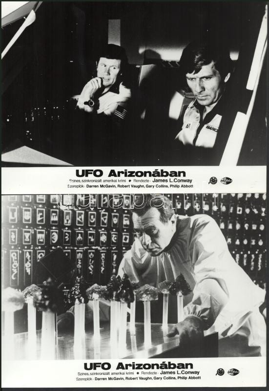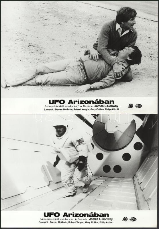 cca 1989 előtt készült, "UFO Arizónában" című amerikai film jelenetei és szereplői, 6 db vintage produkciós filmfotó (vitrinfotó, lobbyfotó) ezüst zselatinos fotópapíron, a használatból eredő (esetleges) kisebb hibákkal, 18x24 cm