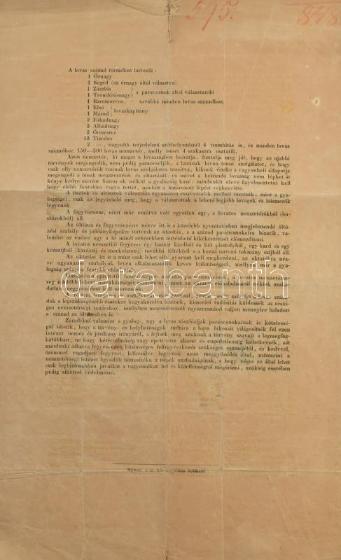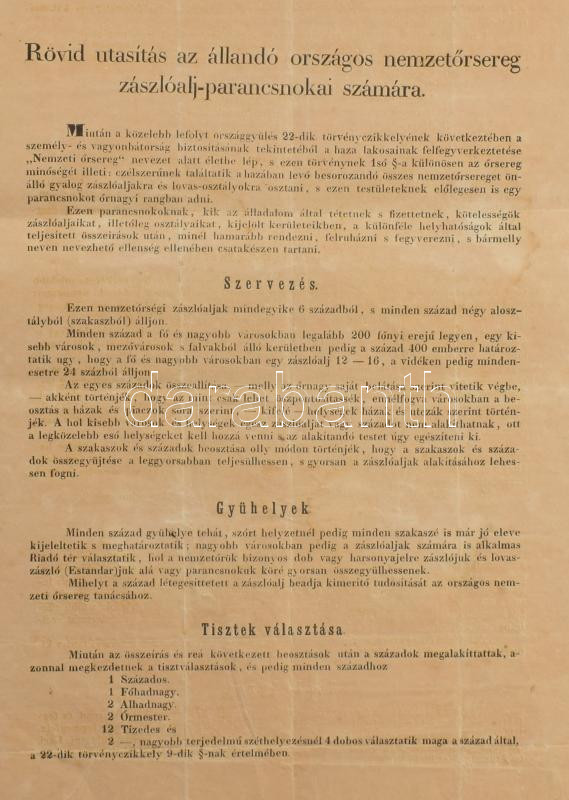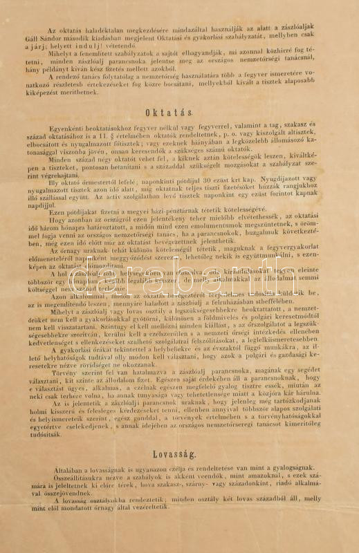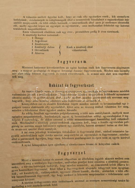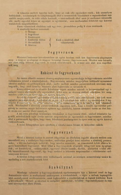 1848 Rövid utasítás az állandó Országos Nemzetőrség zászlóalj-parancsnokai számára 4p. Ez nem önálló dokumentum volt, hanem egy kiegészítő utasítás a nemzetőrségi szabályokhoz, amelyet az Országos Nemzetőrségi Haditanács adott ki 1848 júniusában. Ez az utasítás a nyári hőségre való tekintettel az öltözetre vonatkozóan javasolt vitorlavászon blúzt és ?kényelmi csákót?Hajtva.