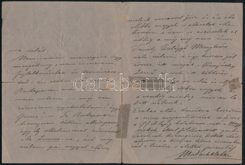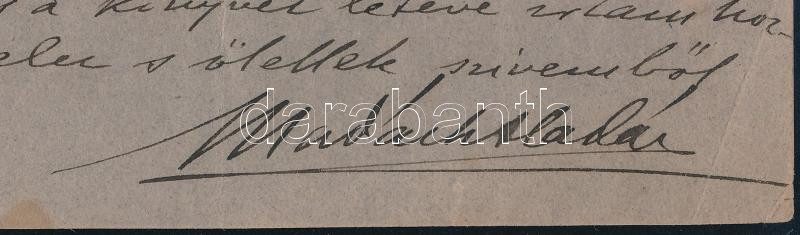1891 Alsósztregovai és kiskelecsényi Madách Aladár József Imre (1848-1908.) költő, író, műkritikus autográf levele 3 beírt oldalon költőtársai Palágyi Menyhért, Komjáthy Jenő említésével. Ragasztva