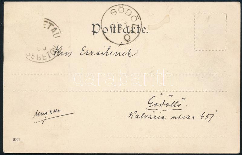Beschreibung: 1900 Kiss József költő, újságíró által lányának írt képeslap