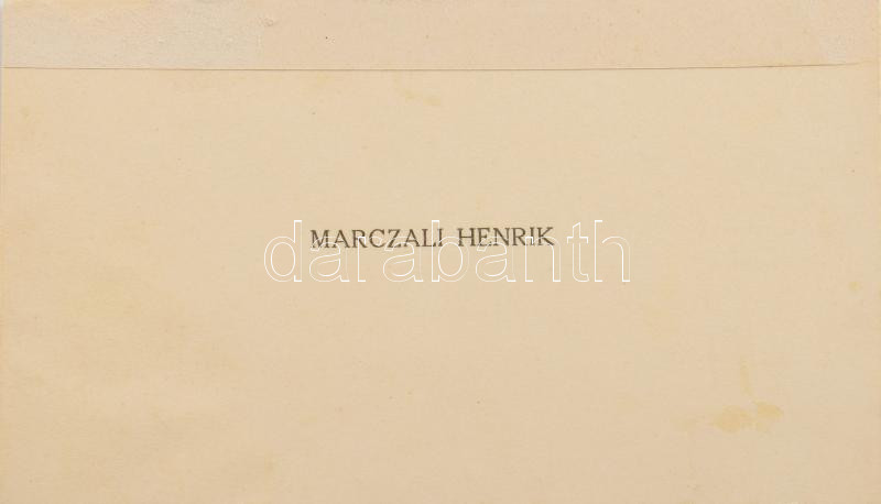 1913 Marczali Henrik (1856-1940) zsidó származású magyar történetíró, egyetemi tanár, névjegykártyája, rajta autográf soraival, de aláírása nélkül, "Kedves Tibor!" megszólítással és köszönet nyilvánítási sorokkal, hogy megküldte a könyvét.
