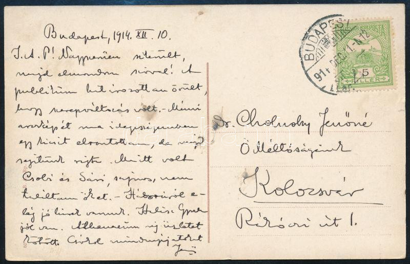 Beschreibung: 1914 Cholnoky Jenő (1870-1950) földrajztudós által feleségének írt autográf képeslap, aláírásával, dátumozva (1914. XII. 10.)