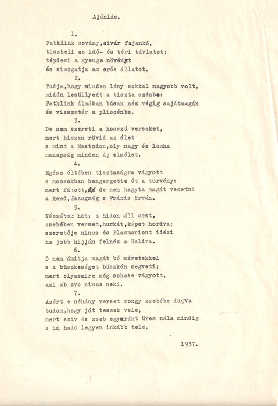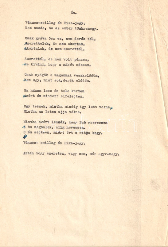 [Kézirat] Aszlányi Károly író, költő, kritikus, forgatókönyvíró (1908-1938) "Zsebversek" című kötetének nyomdai előkészítésre váró, publikálatlan kéziratlapjai Horváth Jenő szerkesztő saját kezű megjegyzéseivel. 53 (+ 5 + 7) gépelt levél.