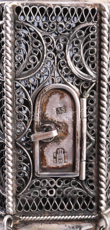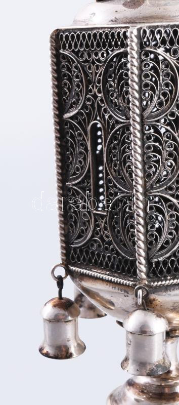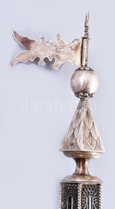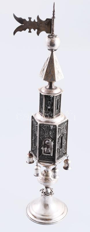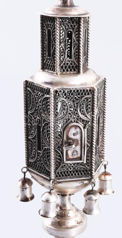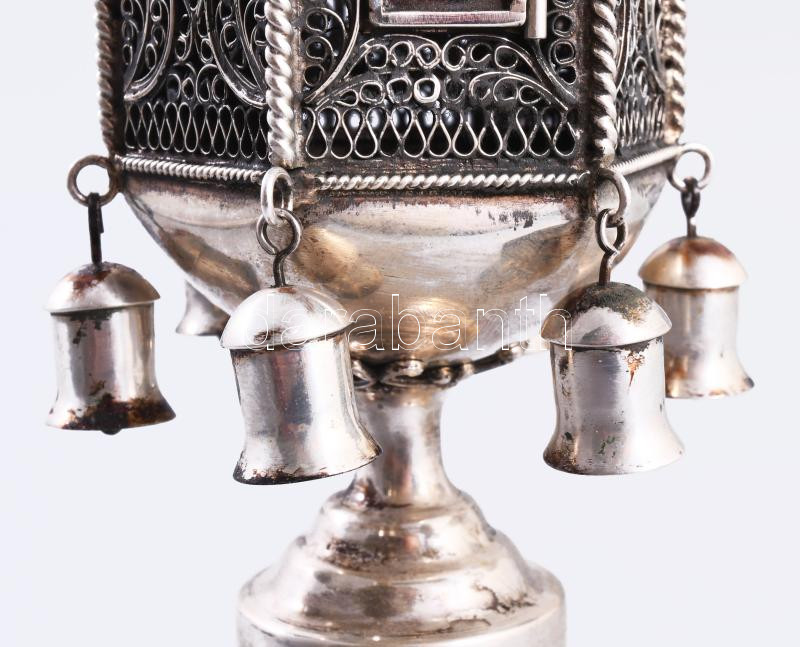 Ezüst (Ag) besamin tartó. 1854, 13 latos jelzés, AS mesterjegy, m: 36,5 cm, 322g /// Silver (Ag) Besamim Container, 1854, 13-lot mark, maker's mark AS, height 36.5 cm, weight 322 g.