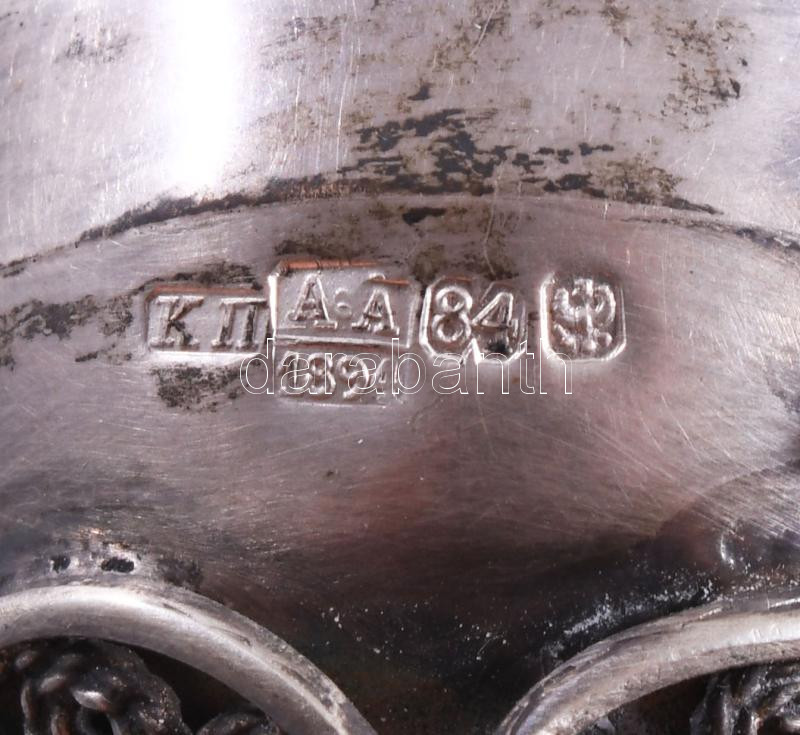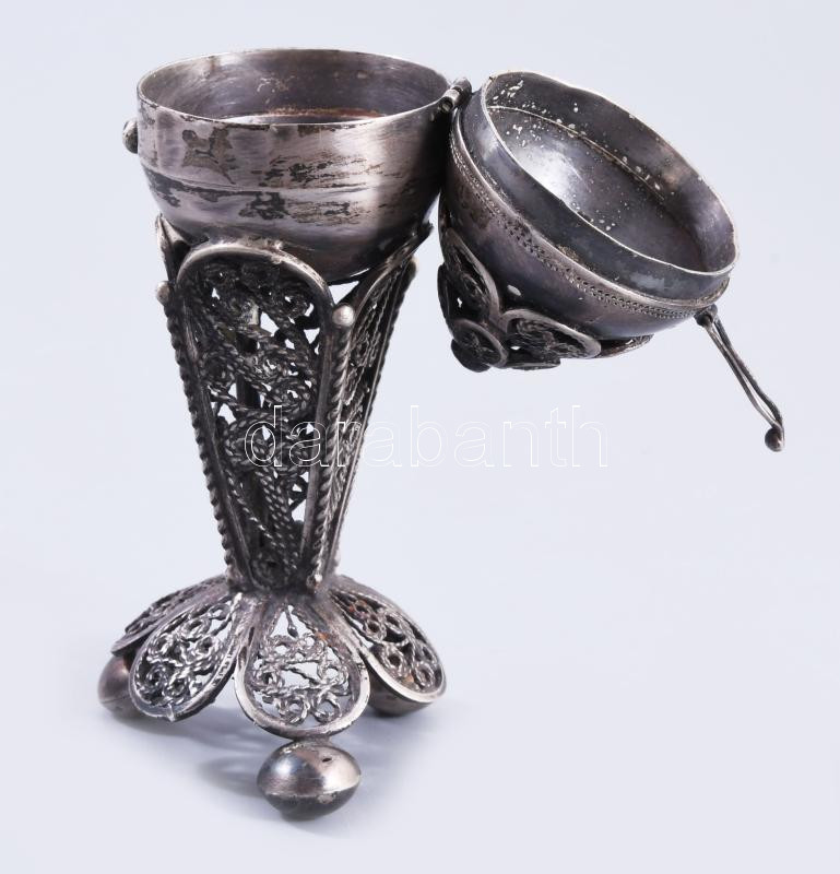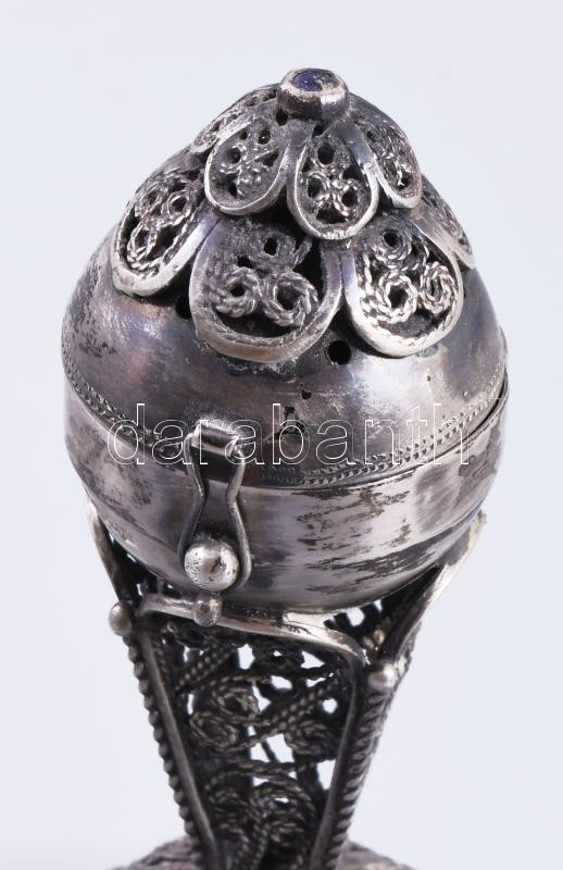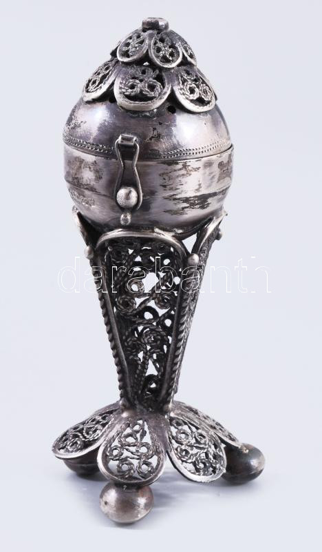 Ezüst (Ag) besamin tartó, 1894, orosz, jelzett, mesterjellel, m: 9,5 cm, 51g /// Silver (Ag) Besamim Container, 1894, Russian, hallmarked, with maker's mark, height 9.5 cm, weight 51 g.