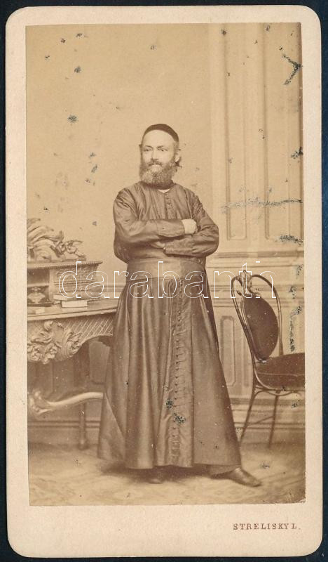 Meisel Farkas Alajos (1816-1867) zsidó teológus és hitszónok, pesti főrabbi vizitkátya fotója Strelisky műterméből /// Photograph of the visiting card (carte de visite) of Farkas Alajos Meisel (1816-1867), Jewish theologian and preacher, Chief Rabbi of Pest, from the Strelisky studio.