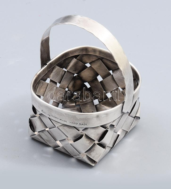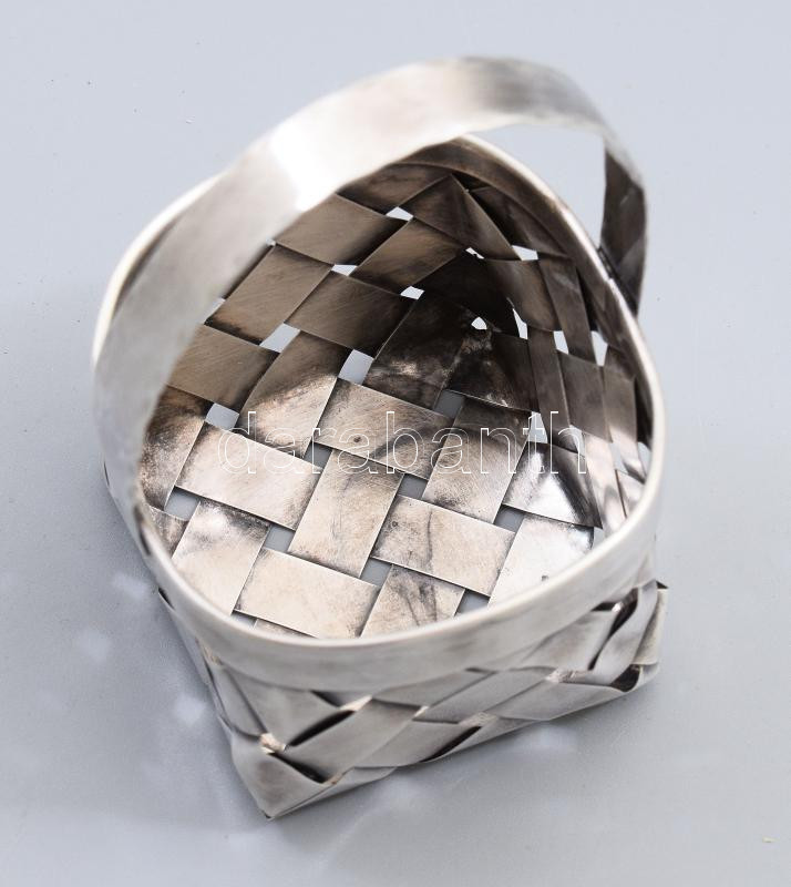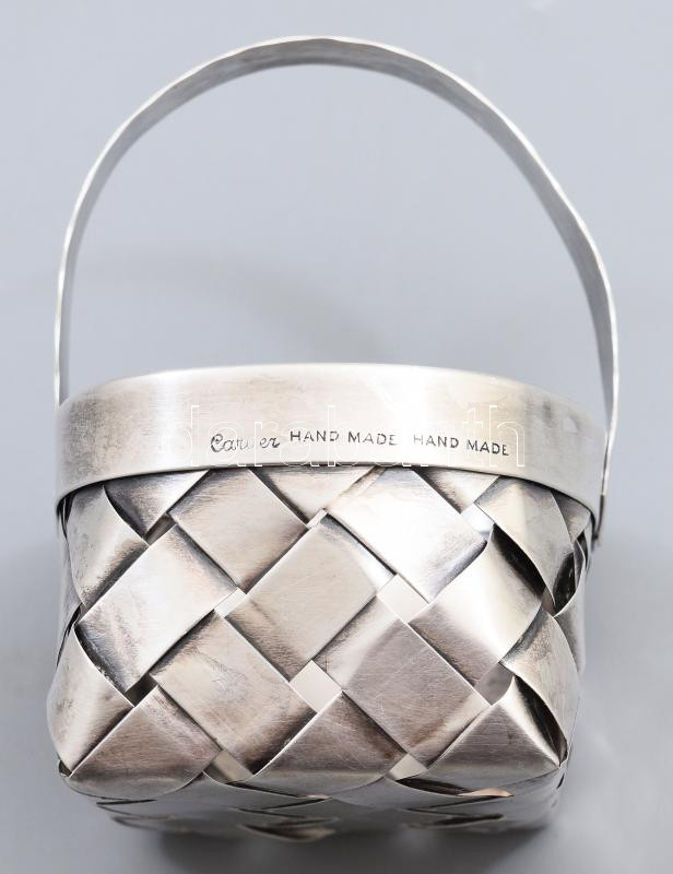 Cartier mid-century ezüst (Ag) fonott kosár alakú gyűrűtartó. Jelzett, m: 8,5 cm, nettó 46g /// Cartier mid-century silver (Ag) braided basket-shaped ring holder. Signed, height: 8.5 cm, net weight: 46 g